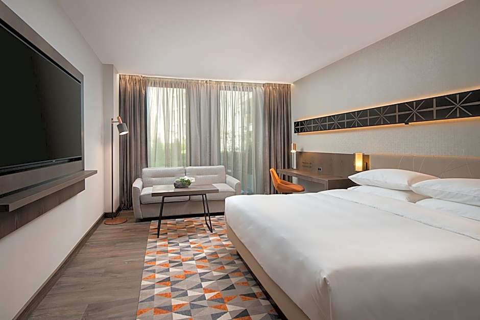 This room has a flat-screen TV, coffee machine, soundproofing and executive lounge access.